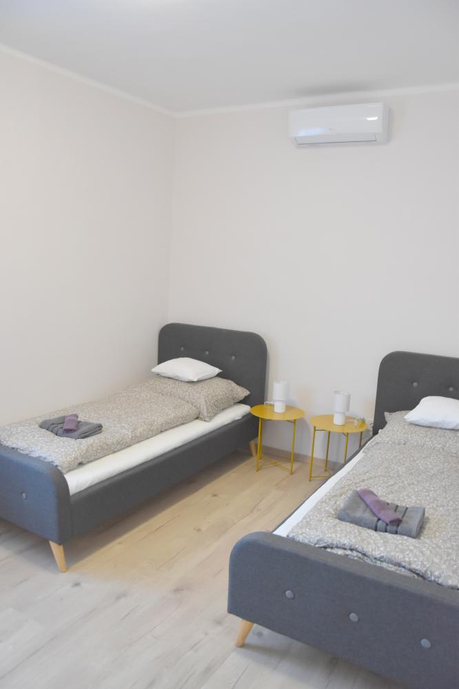 - Ágytípusok: 1x Kétszemélyes ágy, 2x Egyszemélyes ágy, 1x Egyszemélyes ágy, 1x Kanapéágy