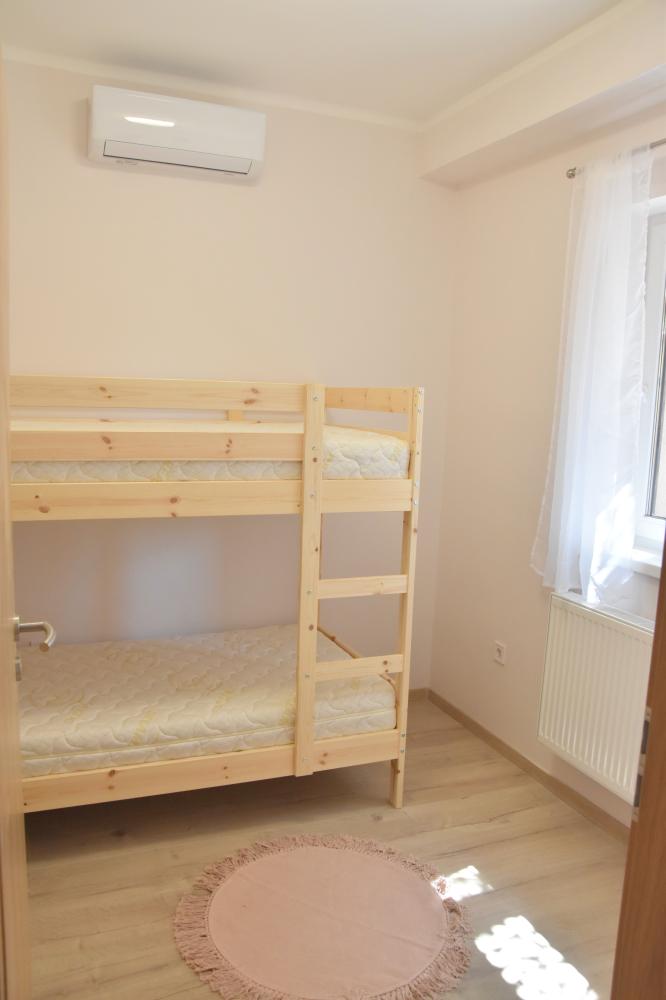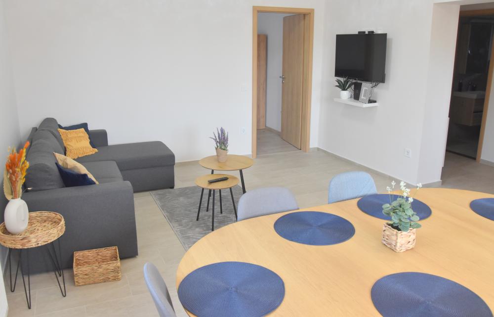 Balatonalmádi nyugodt környékén, 2023-ban teljes körűen felújított apartmanunk szeretettel várja vendégeit. Az ingatlant tágas, világos terek és a barátságos színek jellemzik. Az apartmanhoz egy ingyenes, privát parkolóhely tartozik egy gépjármű részére. A hátsó kertben kialakított kerti kiülő és grillező ideális helyszínt kínál családi összejövetelekhez, baráti találkozókhoz vagy kisebb társaságoknak. Az első emeleti apartman három hálószobás, és nyolc fő befogadására alkalmas. Itt a nappaliban egy kihúzható kétszemélyes kanapé, az egyik hálószobában franciaágy, a másikban két egyszemélyes ágy, a harmadikban pedig emeletes ágy kapott helyet. Az apartmanház közelében élelmiszerbolt, vendéglátóhelyek találhatók, a strand pedig autóval néhány perc alatt elérhető.